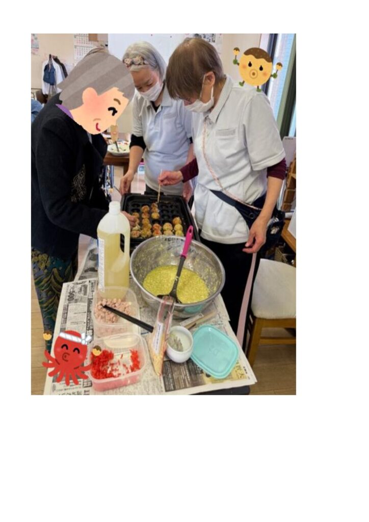 たこ焼きプレートで、たこ焼きを焼いたり、コロコロと転がしたりして頂きました。